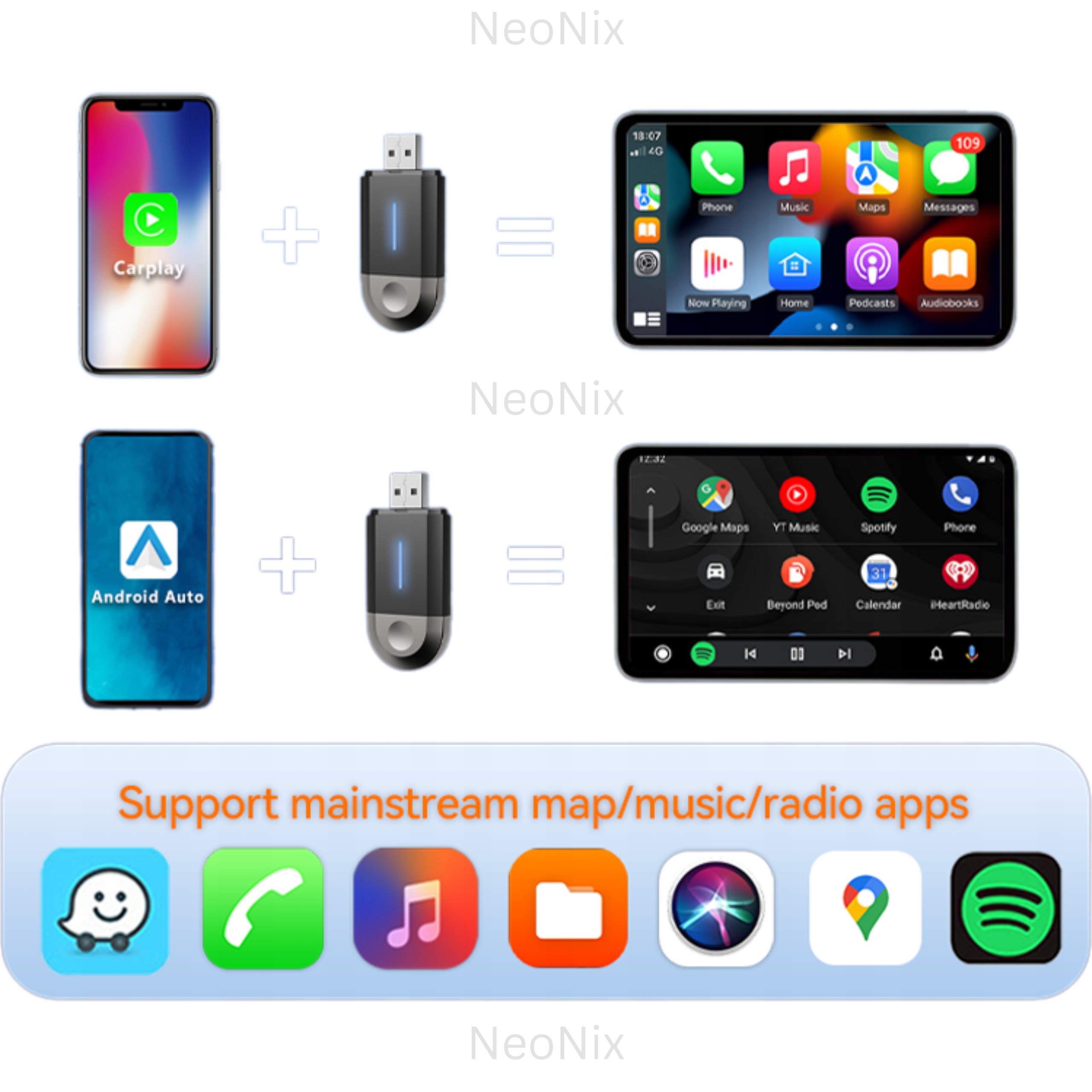 NeoNix Smart Adapter – Bezprzewodowy CarPlay & Android Auto | USB Plug & Play