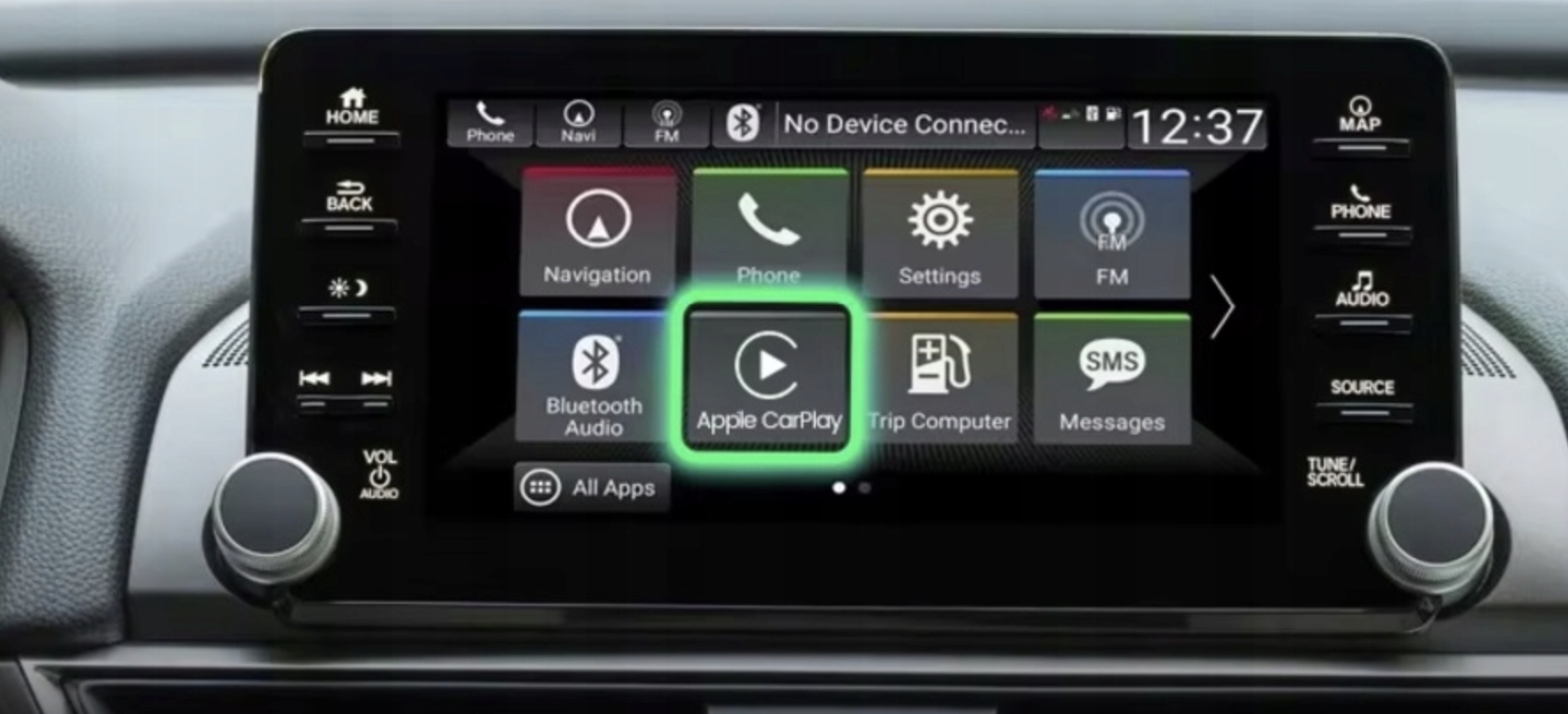 - Korzystaj z aplikacji: Teraz możesz bezprzewodowo korzystać z aplikacji Apple CarPlay, takich jak mapy, muzyka, wiadomości, telefon i wiele innych, sterując nimi za pomocą ekranu dotykowego, głosu lub przycisków na kierownicy.