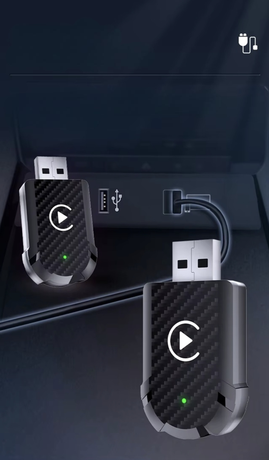 - Podłącz urządzenie: Włóż Mini Wireless CarPlay do portu USB w swoim samochodzie.