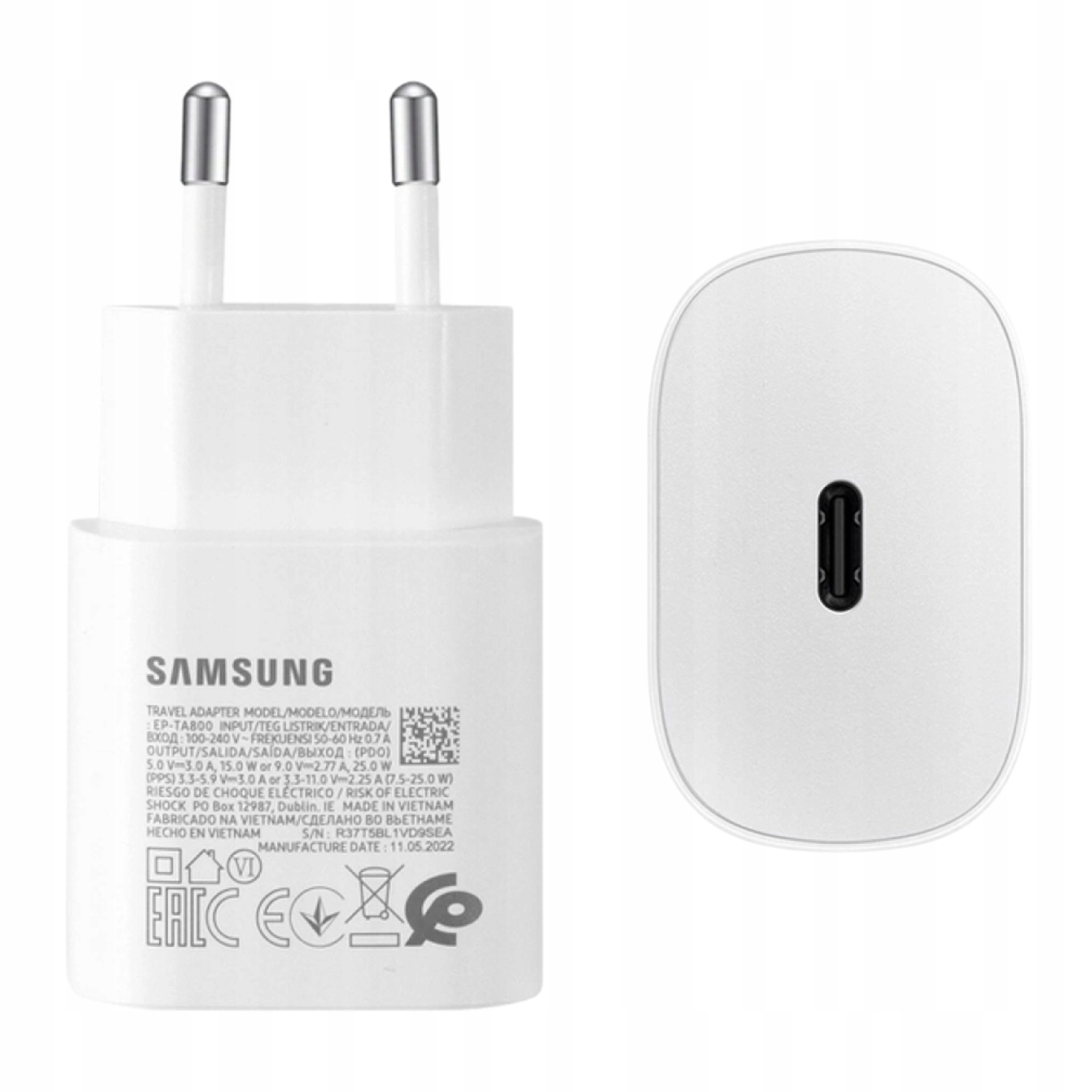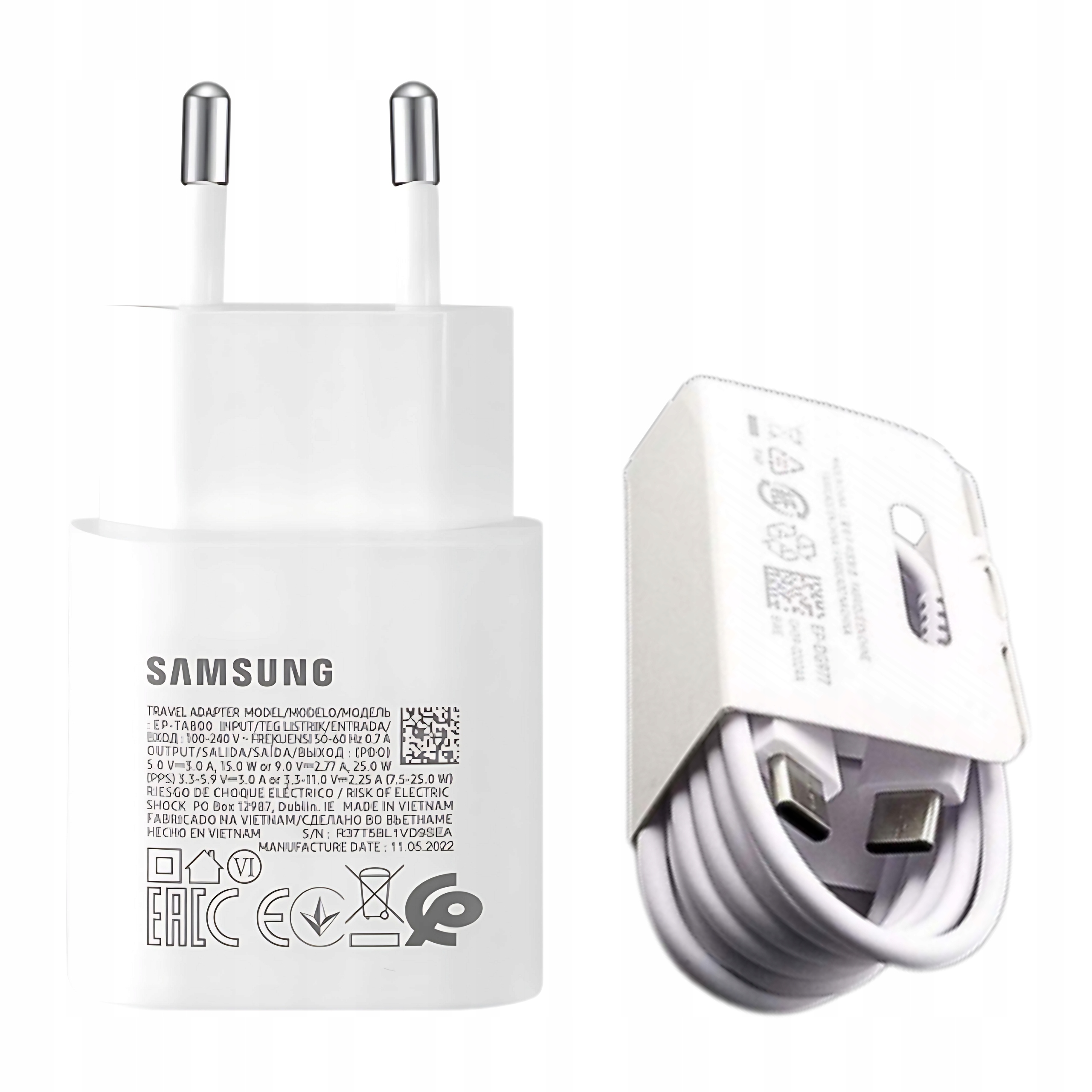 Oryginalna Ładowarka sieciowa Samsung 25W USB-C z kablem USB-C Biała