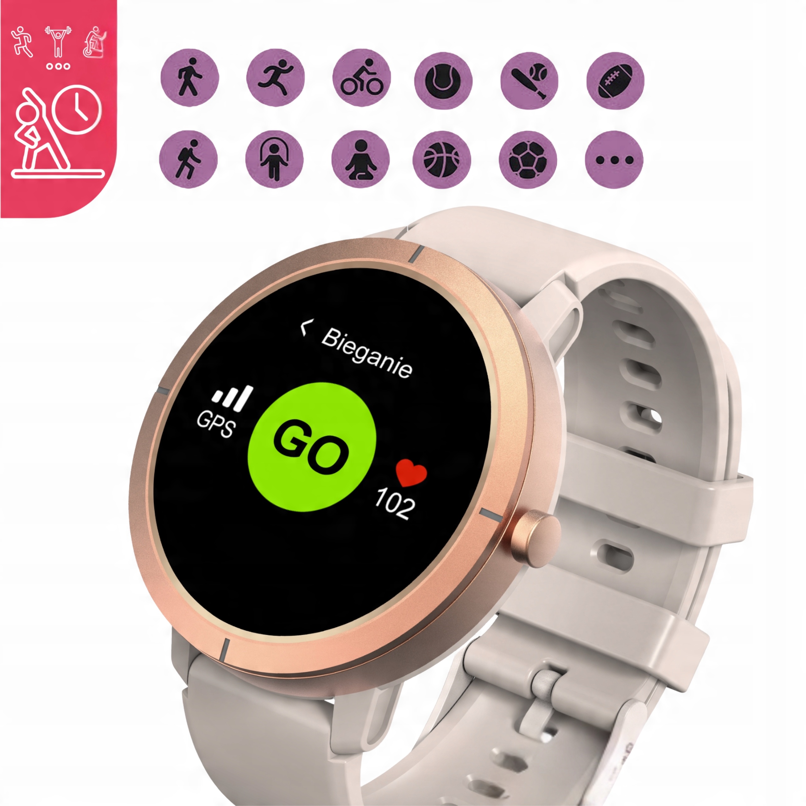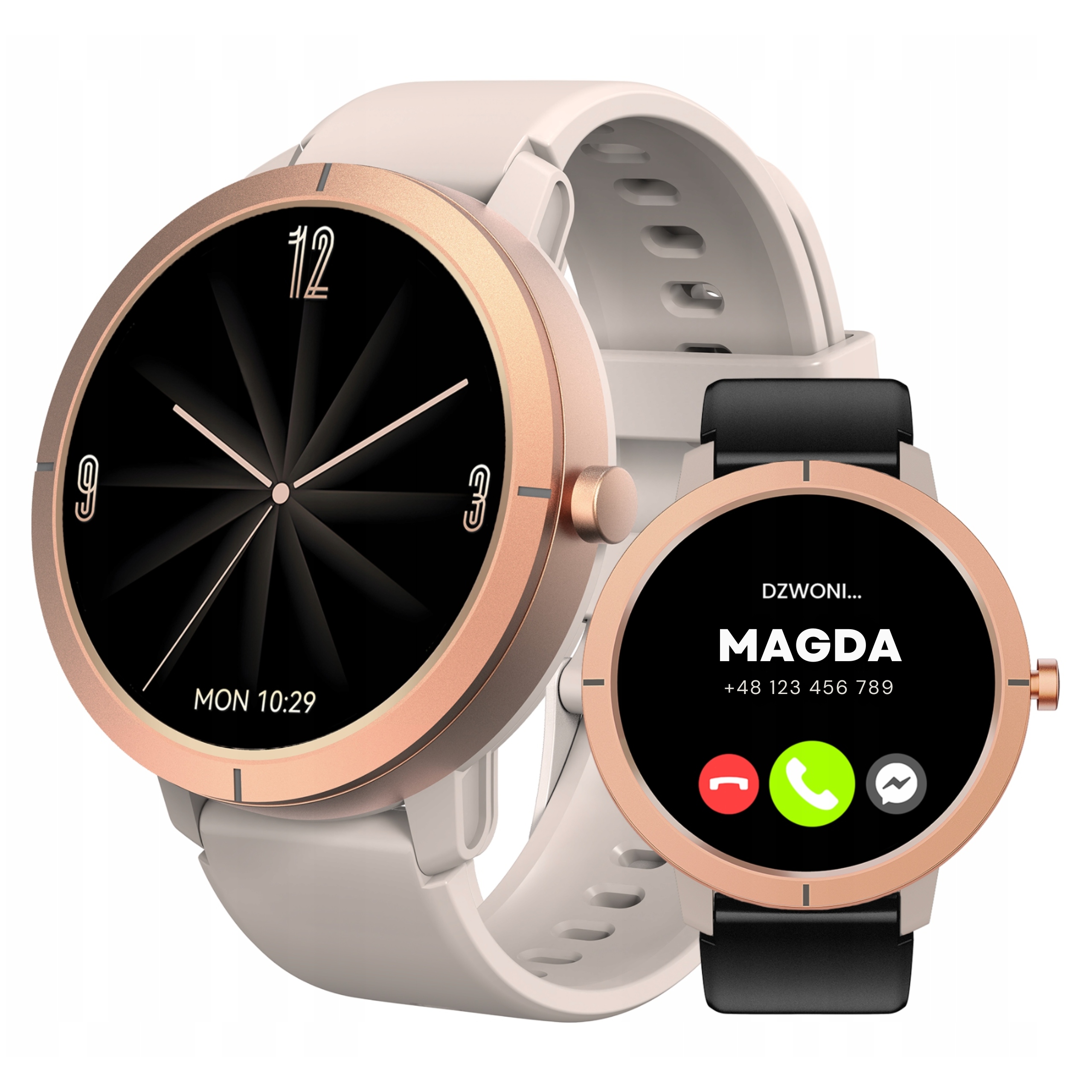 SMARTWATCH DAMSKI ZŁOTY GPS AMOLED WODOODPORNY ROZMOWY PULS SPORT PL MENU
