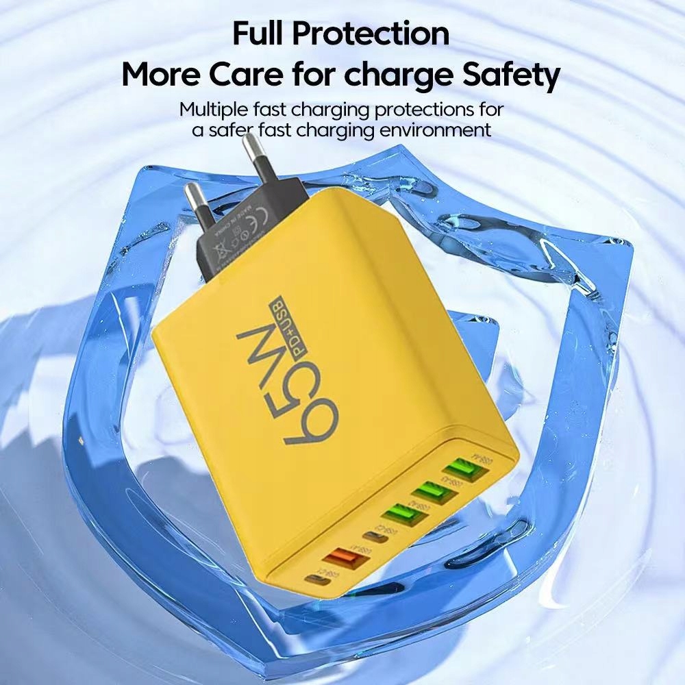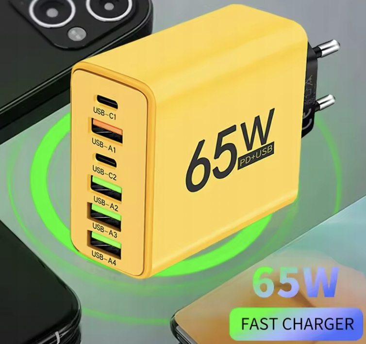 SZYBKA ŁADOWARKA SIECIOWA 6-PORTÓW 2X USB-C, 4xUSB-A 65W