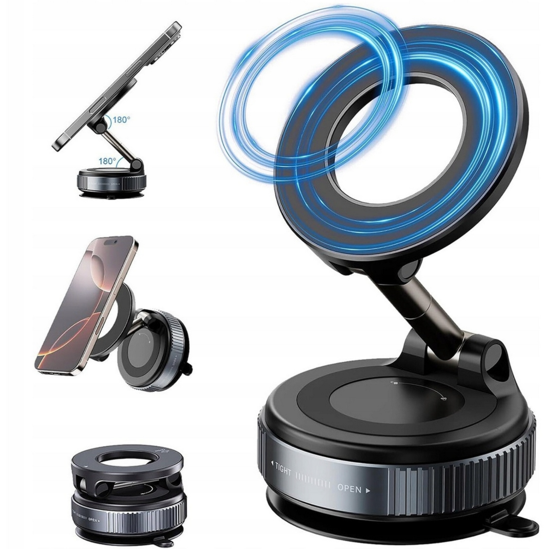 UCHWYT Samochodowy Magnetyczny do Telefonu to solidne i mocne rozwiązanie, które zapewnia bezpieczne mocowanie telefonu podczas jazdy. Dzięki obrotowej konstrukcji 360° umożliwia łatwe dostosowanie kąta widzenia, co zwiększa komfort i bezpieczeństwo użytkowania. Magnetyczny system montażu gwarantuje szybkie i stabilne umocowanie urządzenia, eliminując ryzyko jego przemieszczania się nawet na nierównych drogach. Idealny dla kierowców ceniących wygodę i niezawodność.